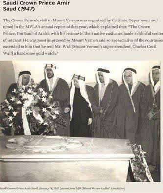 ملک عبدالعزیز همراه با ۵ فرزندش بر مزار «جورج واشنگتن»!!